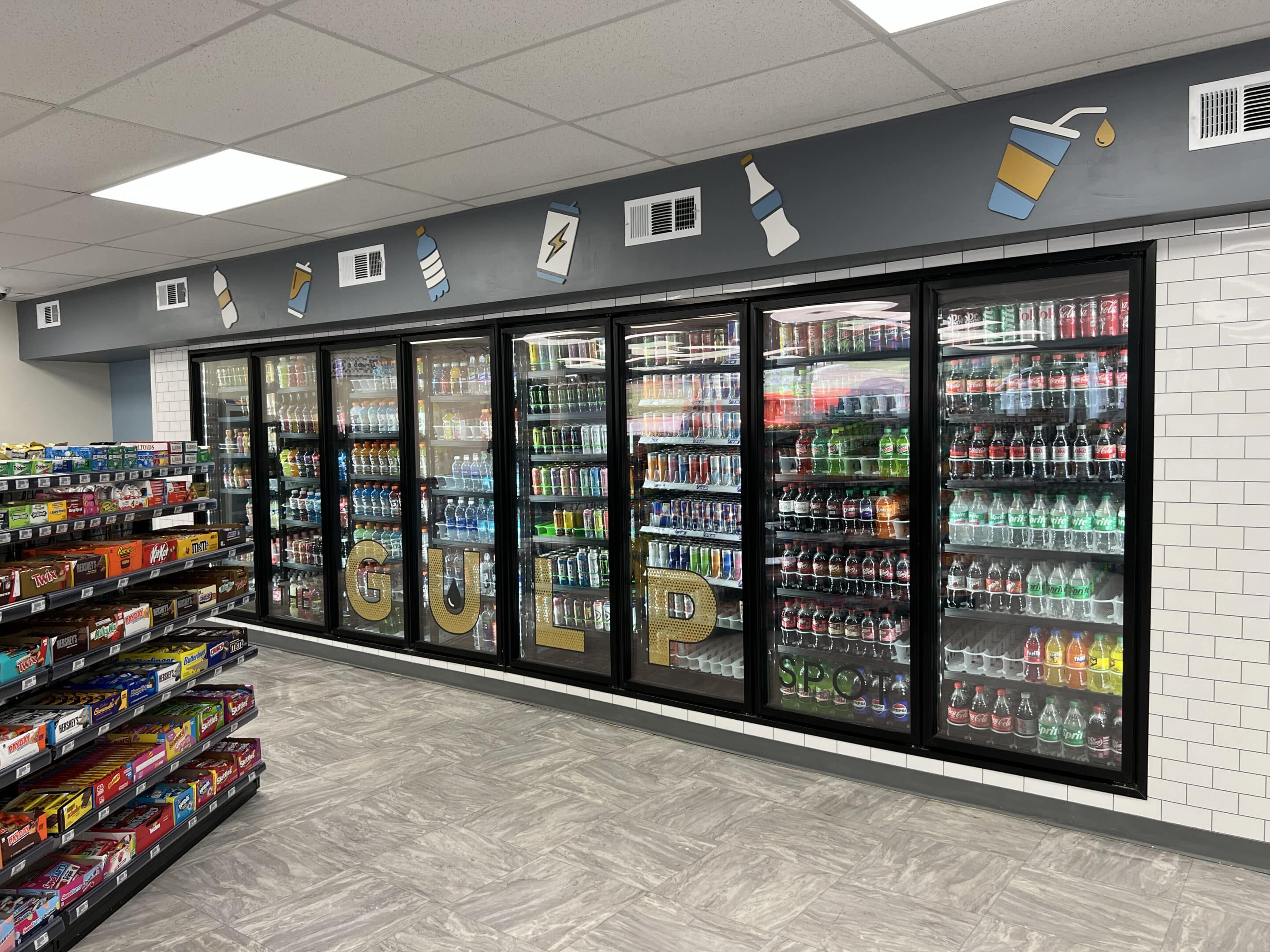 Almost all Gas Spot convenience stores feature a small seating area inside where locals can gather and create routines. “We want to make it a little more convenient for the more rural locations,” said brand manager Alicia LaFollette. “It’s not always fun to eat in your car. Some people need an alternative place. We had a goal of making [our stores] a place you want to spend some time in.”